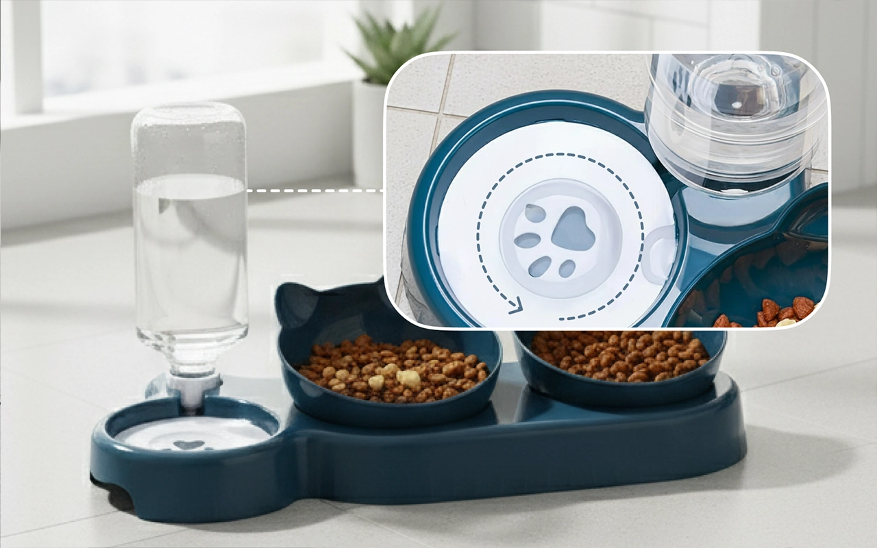 Los tazones desmontables se separan para un lavado rápido y sencillo. Todo se mantiene higiénico con menos esfuerzo para los dueños.