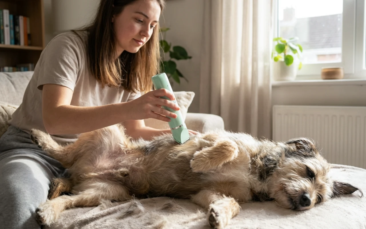 Mi perro mayor se pone nervioso con los ruidos fuertes, así que el motor silencioso es perfecto. Se sienta en mi regazo mientras lo arreglo y parece relajado.