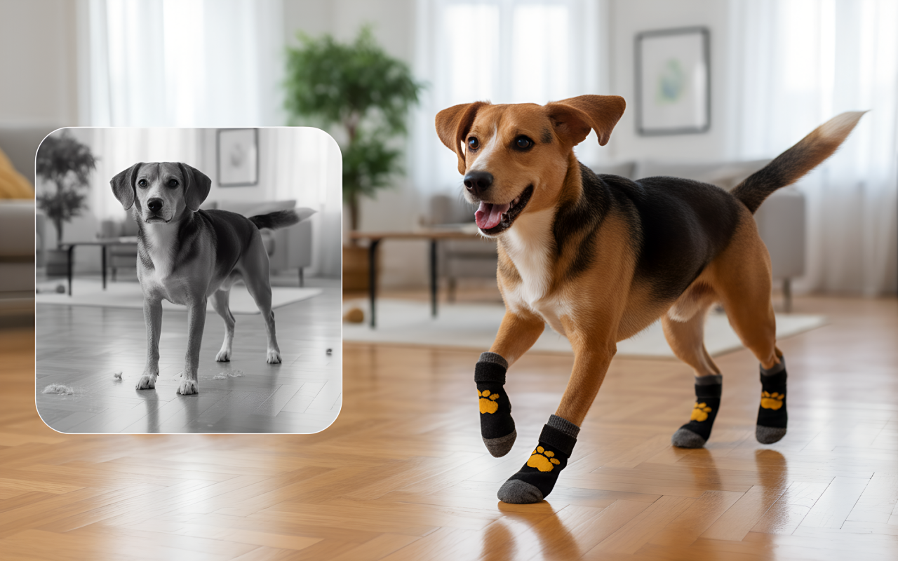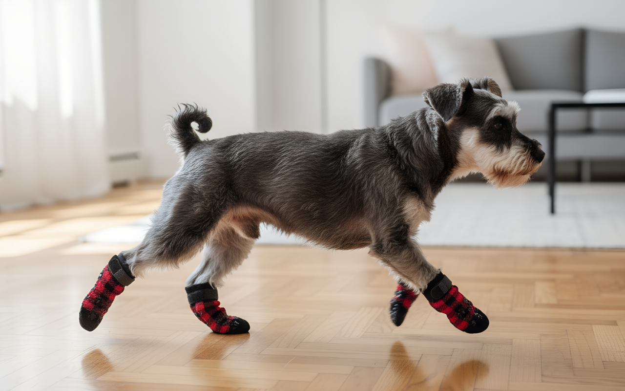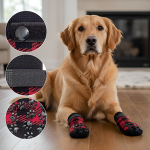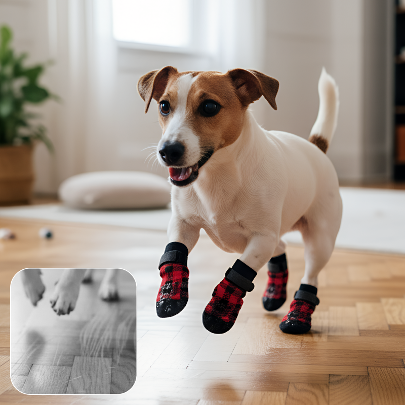Mi perro los usa todo el día. Sus pies ya no se sienten fríos y no hay más resbalones en la cocina. Son duraderos y resisten hasta las carreras.