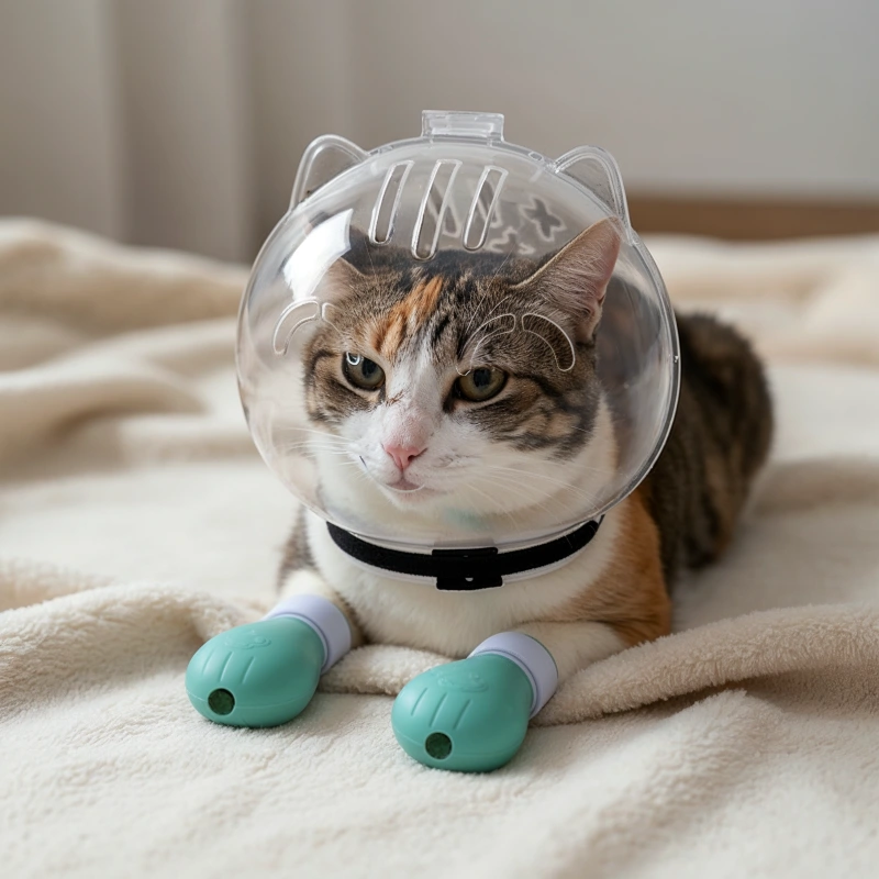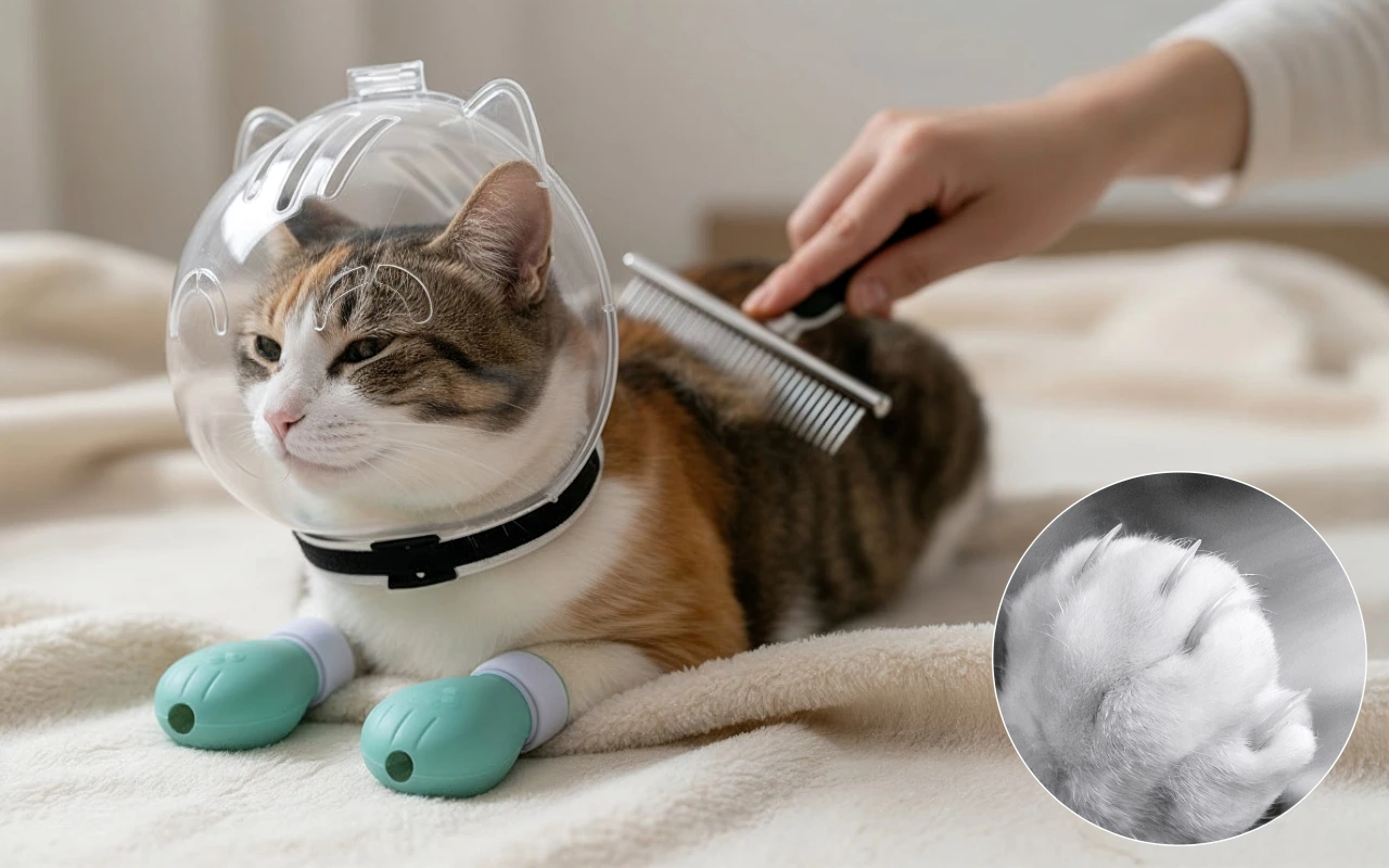 Bozal de Peluquería Antimordidas para Gatos y Protector de Patas Antiarañazos Botines para Mascotas