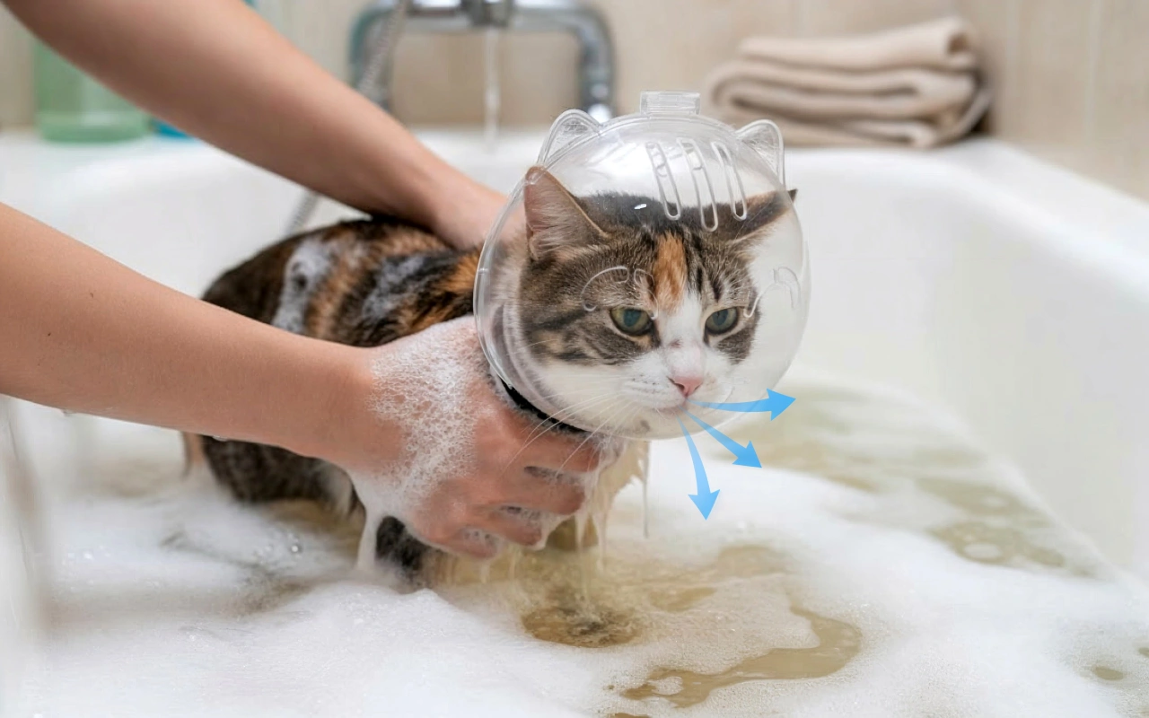 Las rejillas especiales permiten que las mascotas respiren sin estrés ni pánico. Sin sensación de sofoco, los animales están más felices durante el aseo.