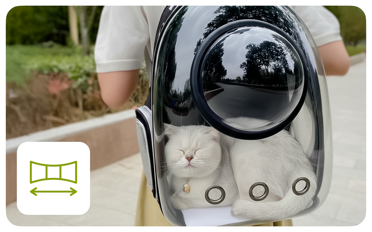 Una ventana transparente permite que tu mascota vea todo afuera. La curiosidad se satisface mientras los nervios desaparecen al no estar encerrado.