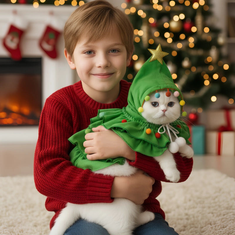 9 valoraciones en Disfraz de árbol de Navidad para gato con capucha y estrella