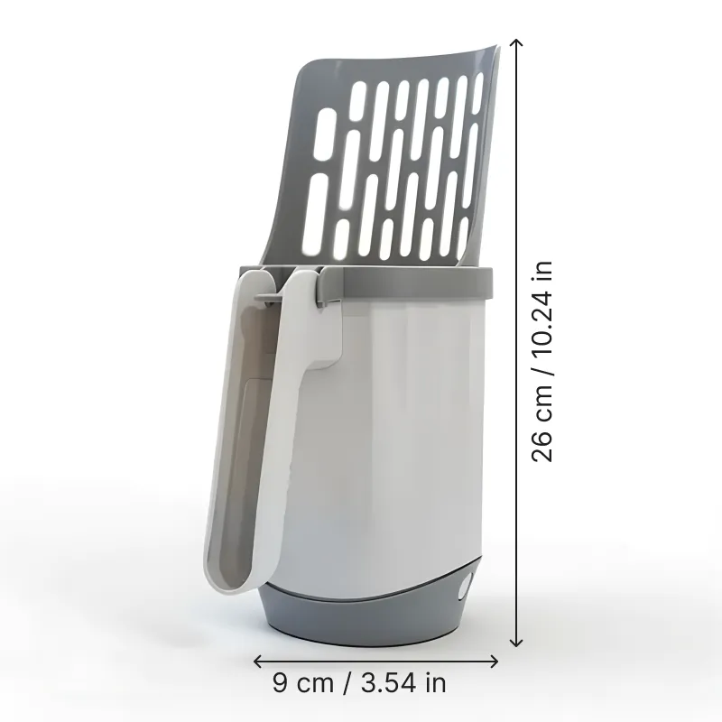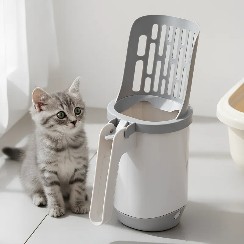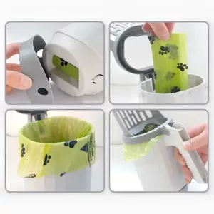 La combinación de pala y bolsa hace que todo sea más fácil. No hay arena caída ni derrames, solo un trabajo rápido y mi casa huele mucho mejor ahora.