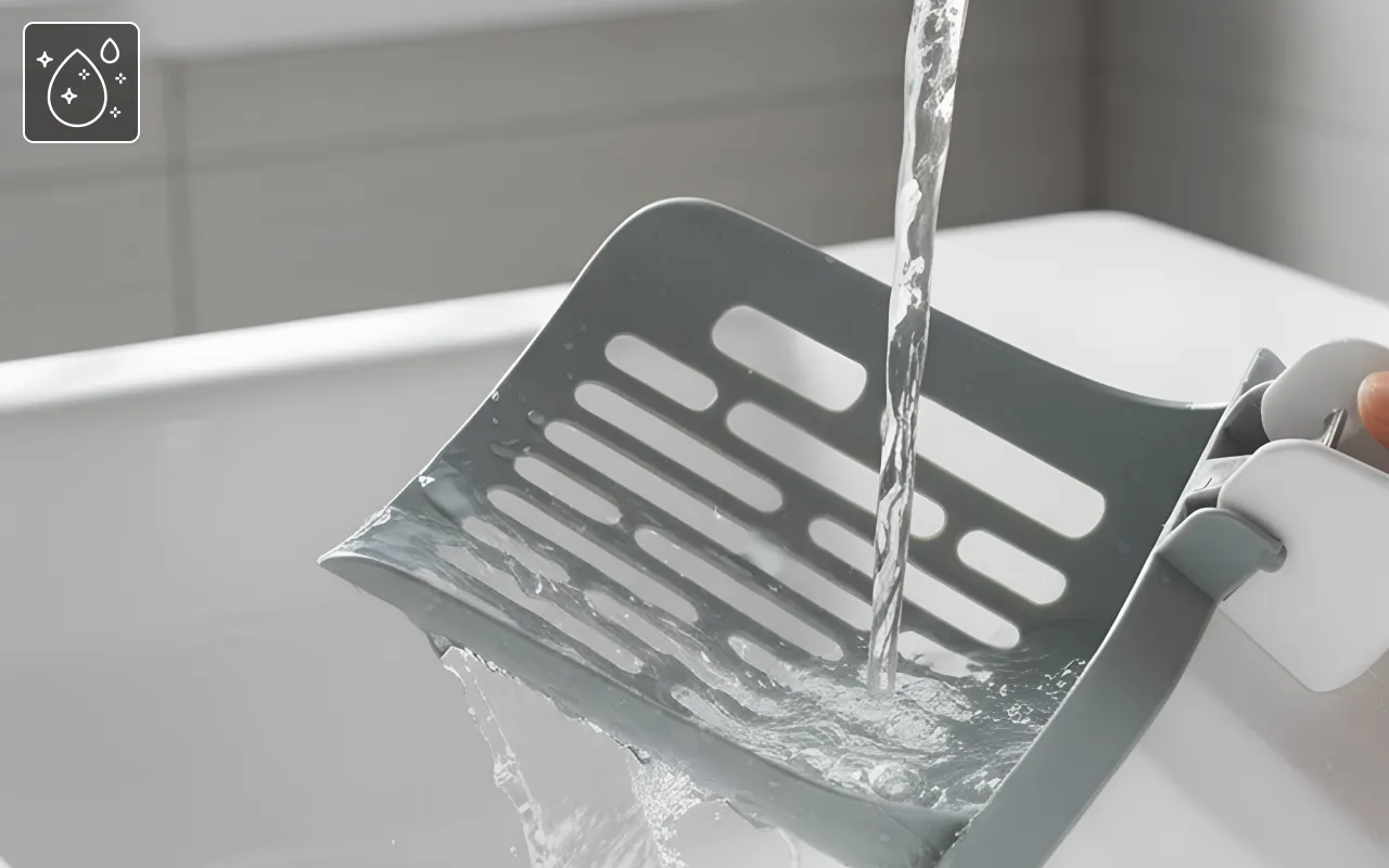 Fácil de lavar y reutilizar cada vez. Súper resistente, no se ha doblado ni roto y la caja de mi gato está más limpia que nunca.