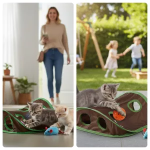 ¡Mantiene a mi gata curiosa súper ocupada! Le encanta buscar el ratón por los pequeños túneles y nunca se cansa de ello.