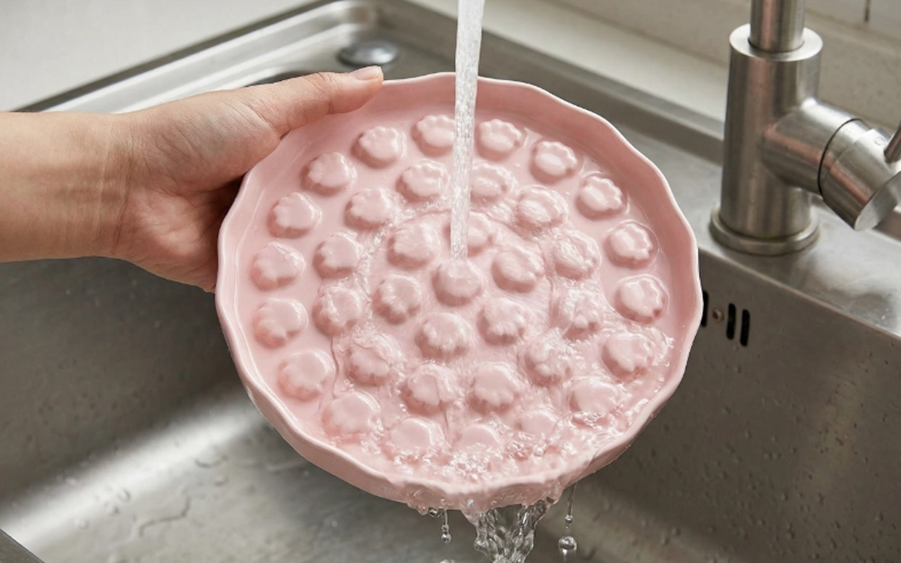 El lavado solo necesita un enjuague rápido con agua tibia. No quedan restos ocultos ni manchas en este diseño.