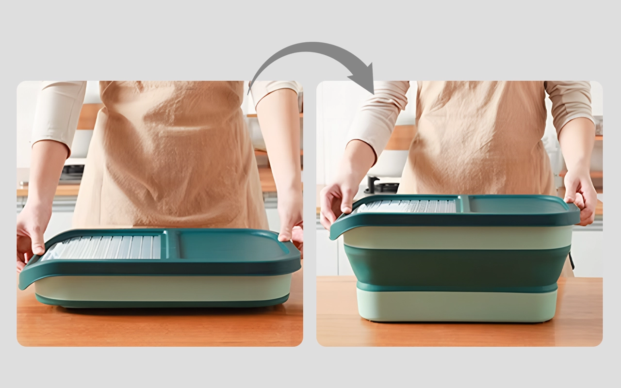 Se pliega en segundos, liberando valioso espacio en la cocina. Guárdala donde quieras y olvídate de los montones desordenados.