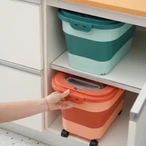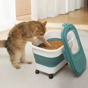 La comida se mantiene crujiente y seca, para que tus mascotas disfruten cada comida. El diseño delgado cabe perfectamente en esquinas estrechas, manteniendo tu espacio ordenado en todo momento. Muévelo fácilmente gracias a las ruedas suaves debajo. La tapa transparente te permite ver los granos sin levantar la tapa.
