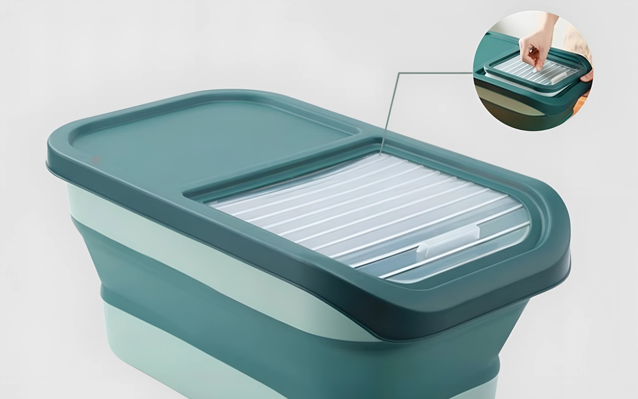 Esta caja para alimentos realmente me sorprendió. La pliego cuando no la uso y ¡no ocupa nada de espacio! La recomiendo mucho para apartamentos pequeños.
