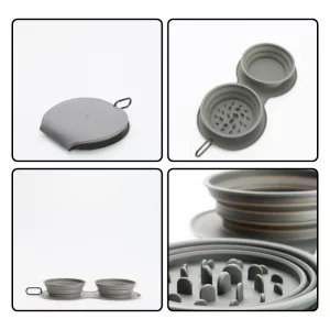 Los cuencos se comprimen en una forma compacta, lo que facilita su almacenamiento cuando no se necesitan. Esta característica práctica mantiene tu espacio o maleta de viaje ordenados y libres de desorden.