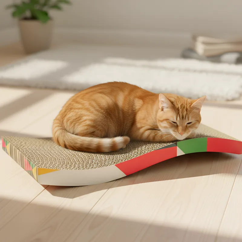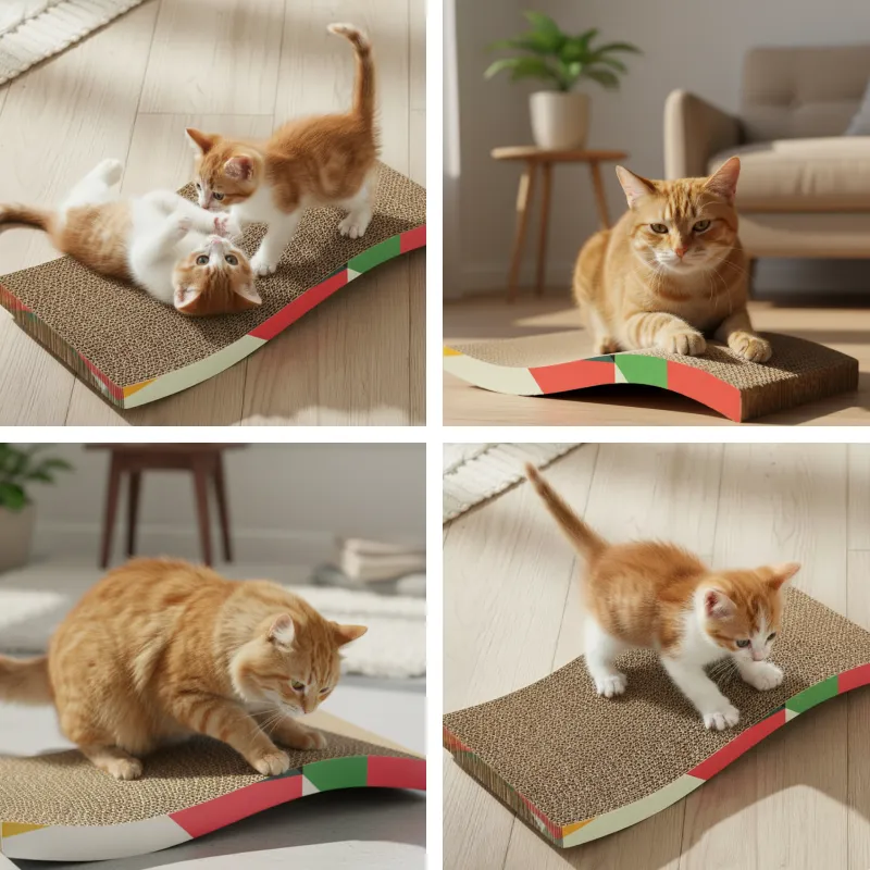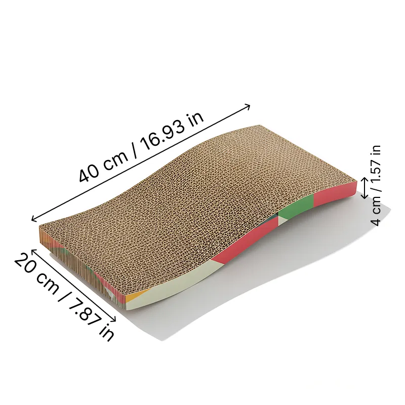 Me sorprendió lo resistente que es. Mi gato es brusco pero la tabla lo aguanta bien. También se ve tranquilo acostado en las curvas.