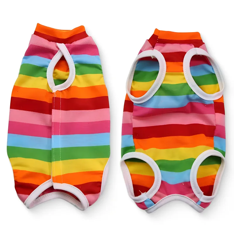 Nuestro traje de recuperación para gatos presenta divertidos estampados y colores brillantes. Convierte el tiempo de sanación en una experiencia con estilo y alegre.
