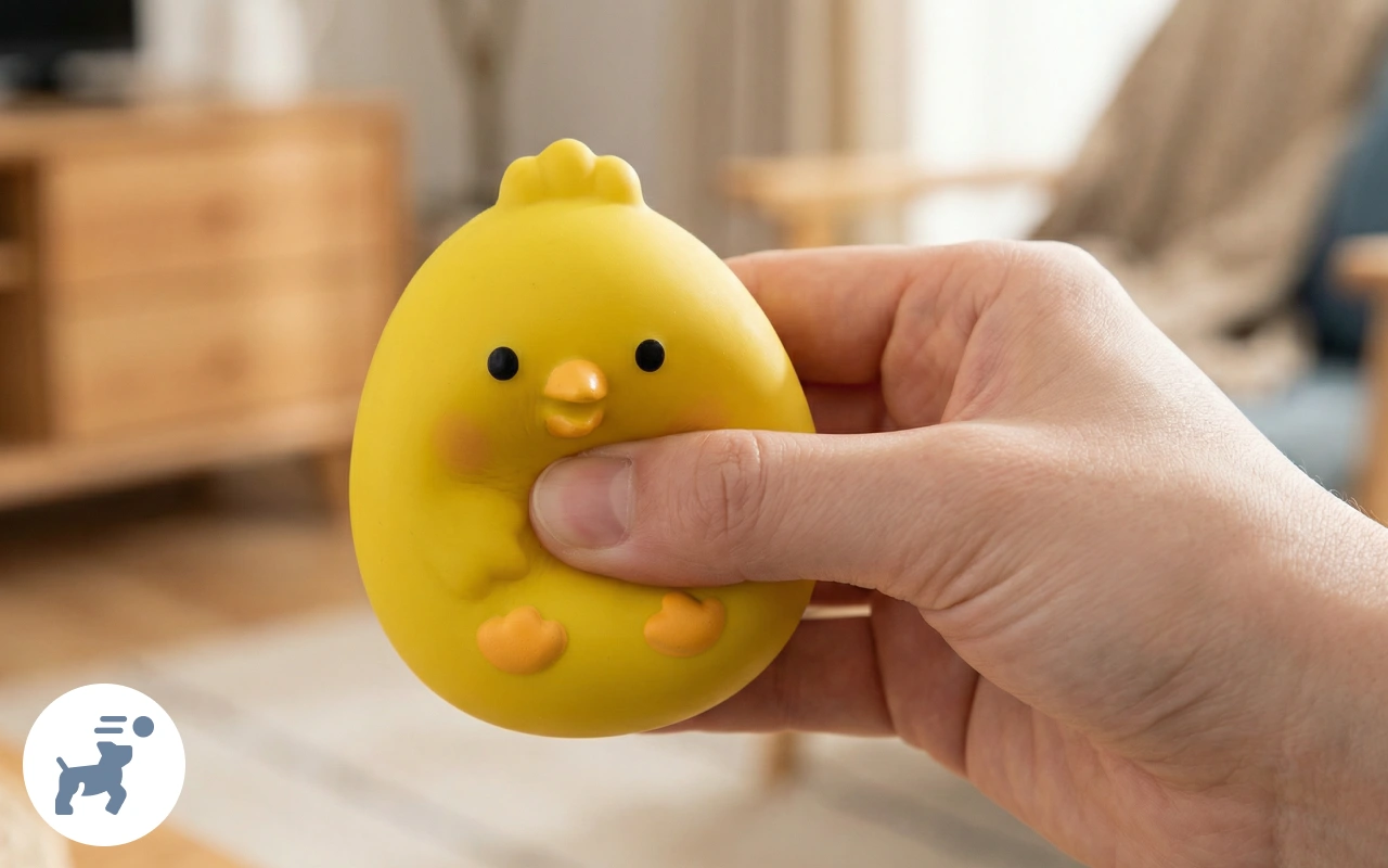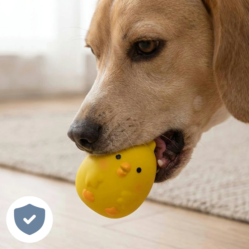 A nuestra perra le encantan los juguetes ruidosos y este pollo siempre la entusiasma. He notado que está más tranquila después de jugar y el material no se rompe.