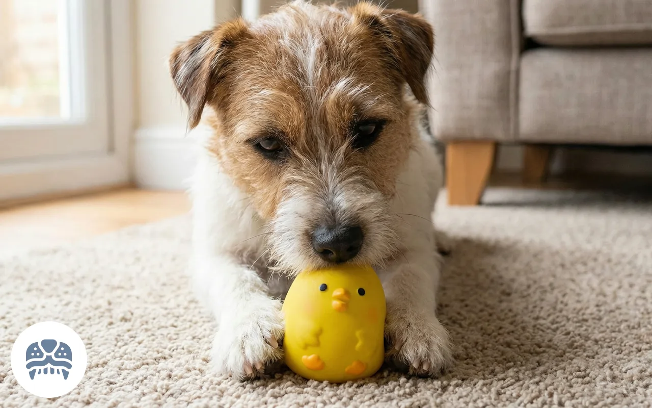 Mi perro rescatado tenía miedo a los juguetes nuevos, pero este pollo lo cambió todo. Ahora no para de jugar con él. Incluso a veces duerme con el pollo.