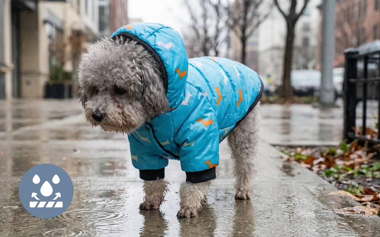 Las capas impermeables mantienen el pelaje seco incluso bajo lluvias inesperadas. No más abrigos mojados o sucios después de paseos en el parque con mal tiempo.