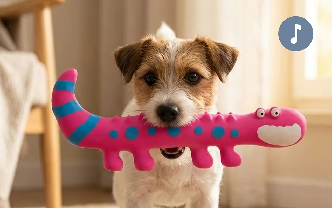 Como papá ocupado, me alegra que esta lagartija con sonido mantenga entretenido a nuestro bóxer mientras cocino la cena. La muerde, la hace sonar y ya no mendiga comida en la encimera.