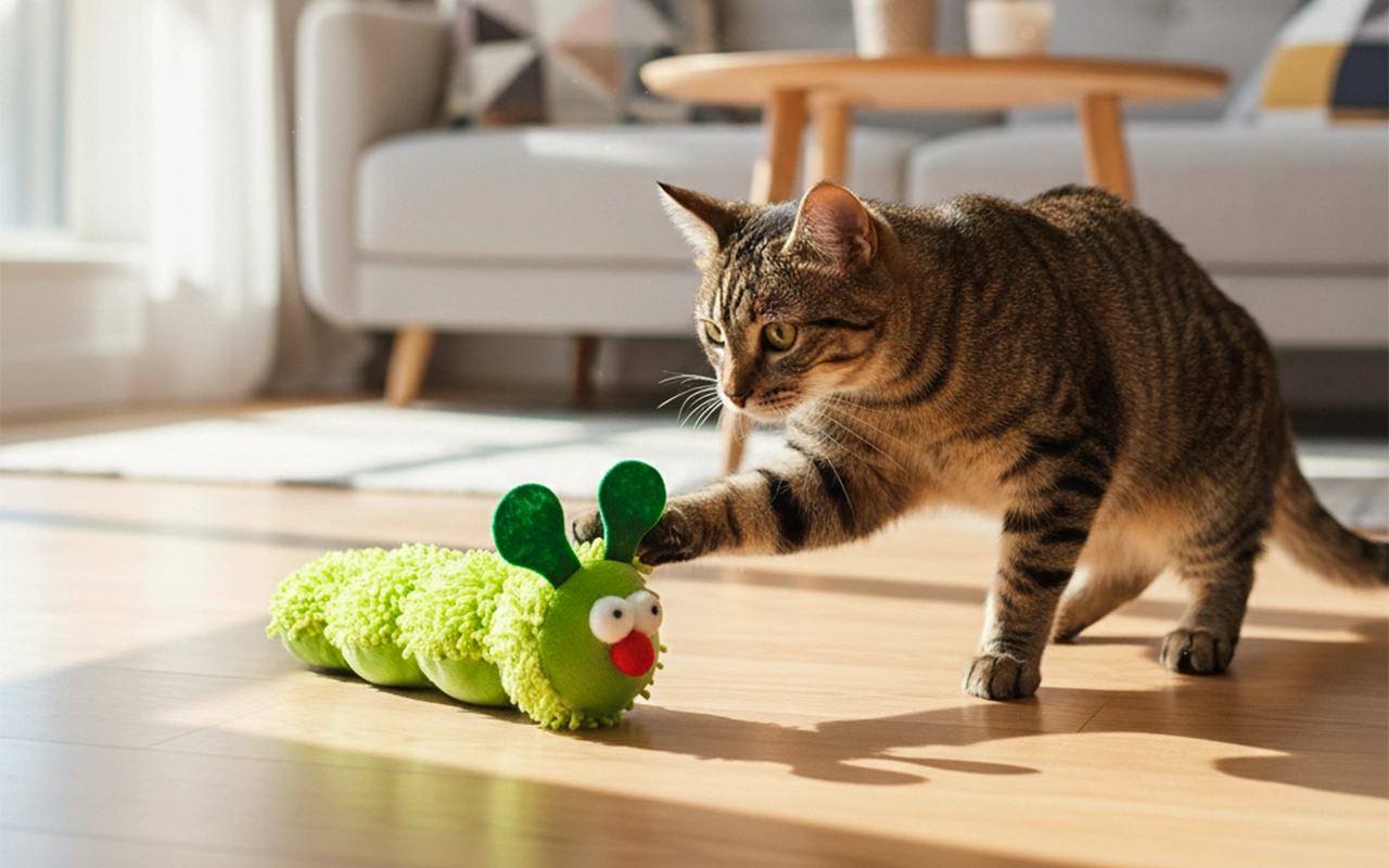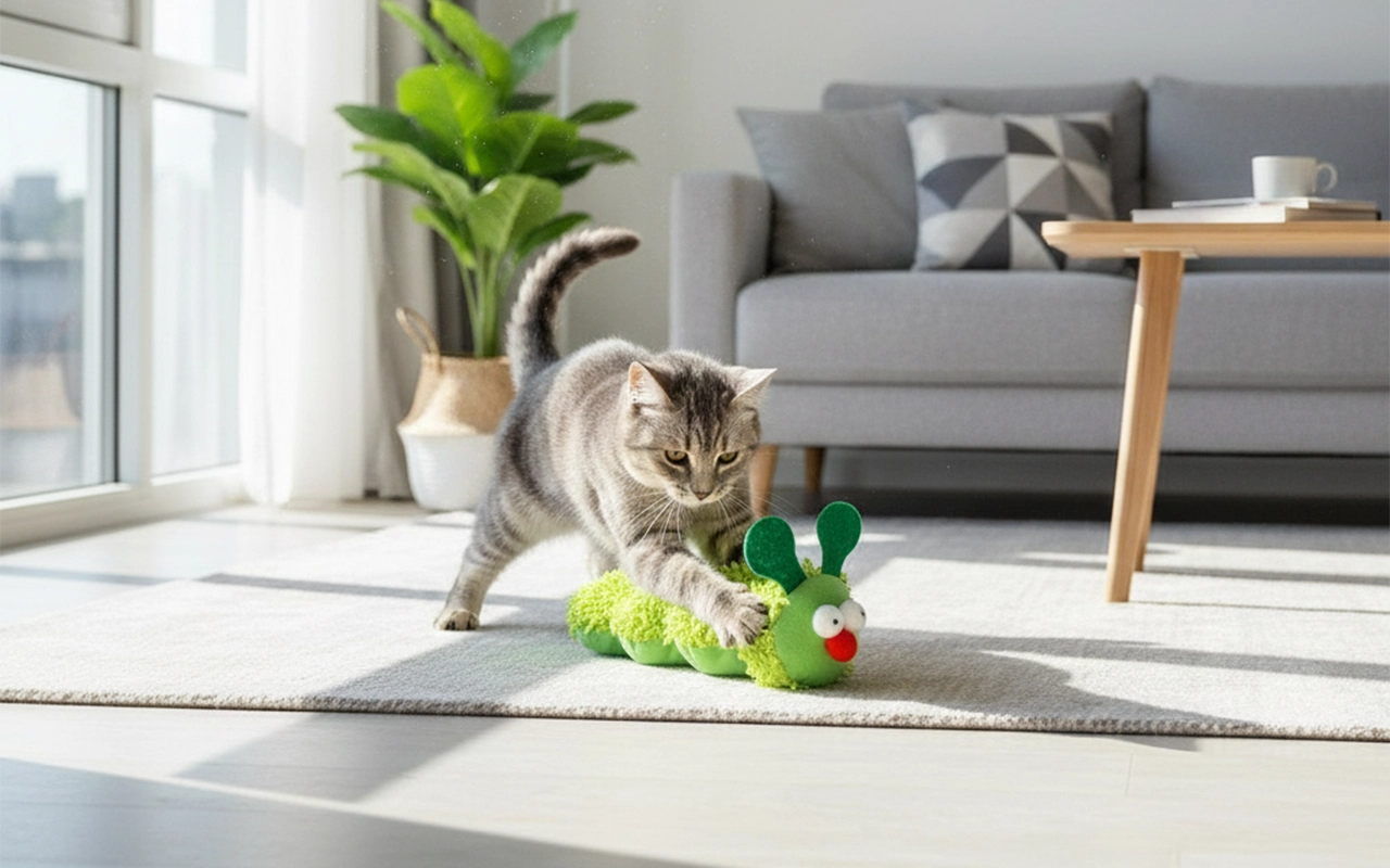 Juguete de peluche en forma de oruga para gatos
