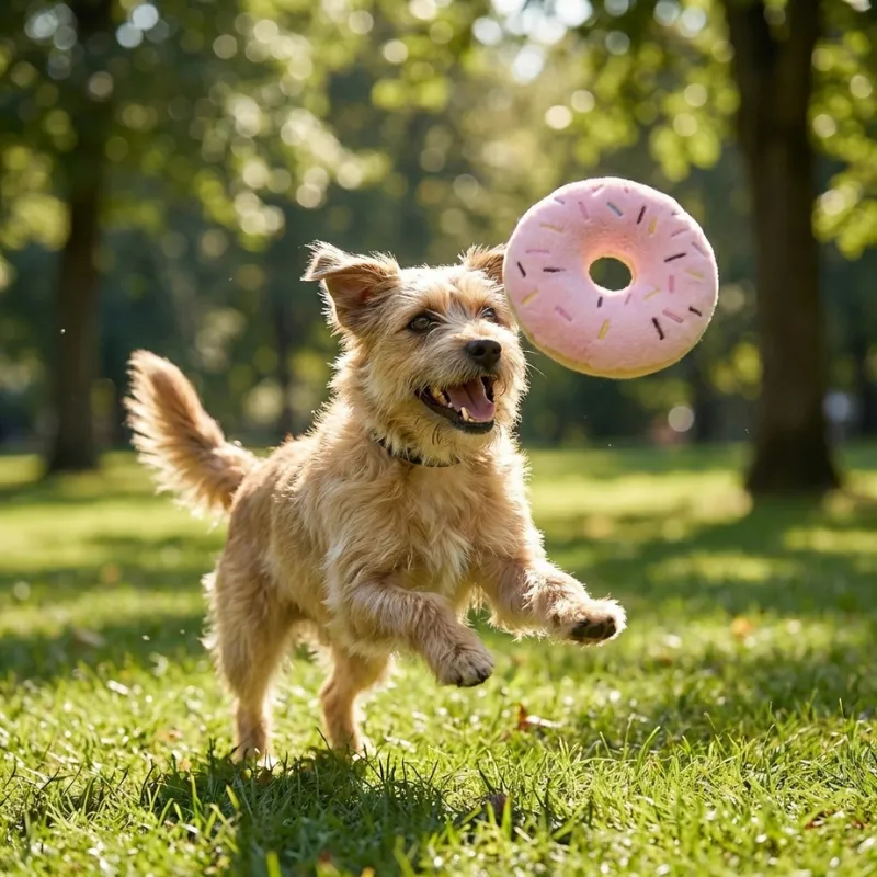 24 valoraciones en Juguete para perro de peluche en forma de donut con chirriador