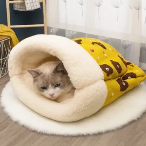 Bolsa de dormir de felpa linda y acogedora cama cerrada para gatos