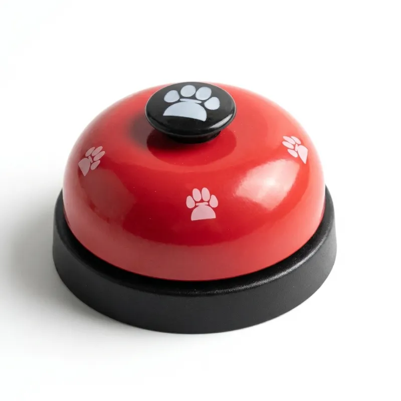 Mantenemos la campanilla en la cocina. Los dos perros entendieron rápido que deben tocarla para la cena. Sonido claro, base estable y nada de maullidos fuertes.