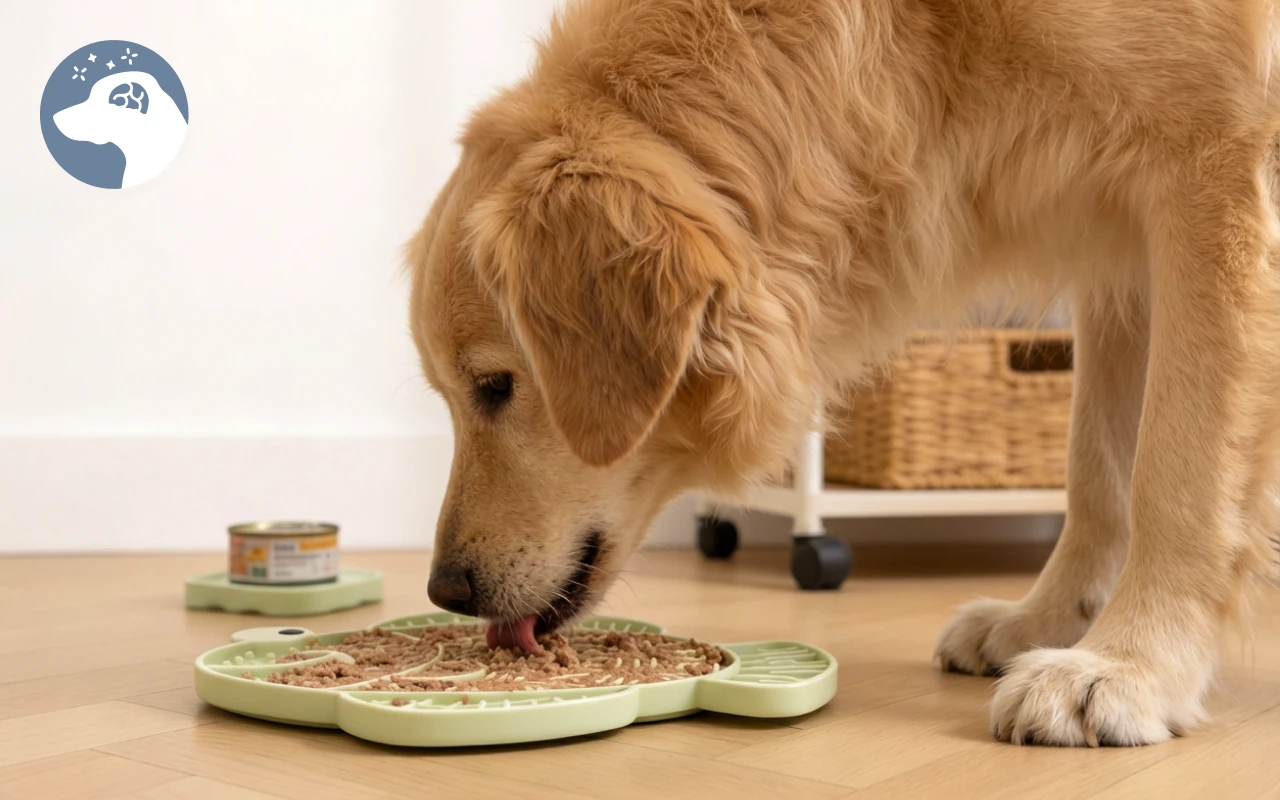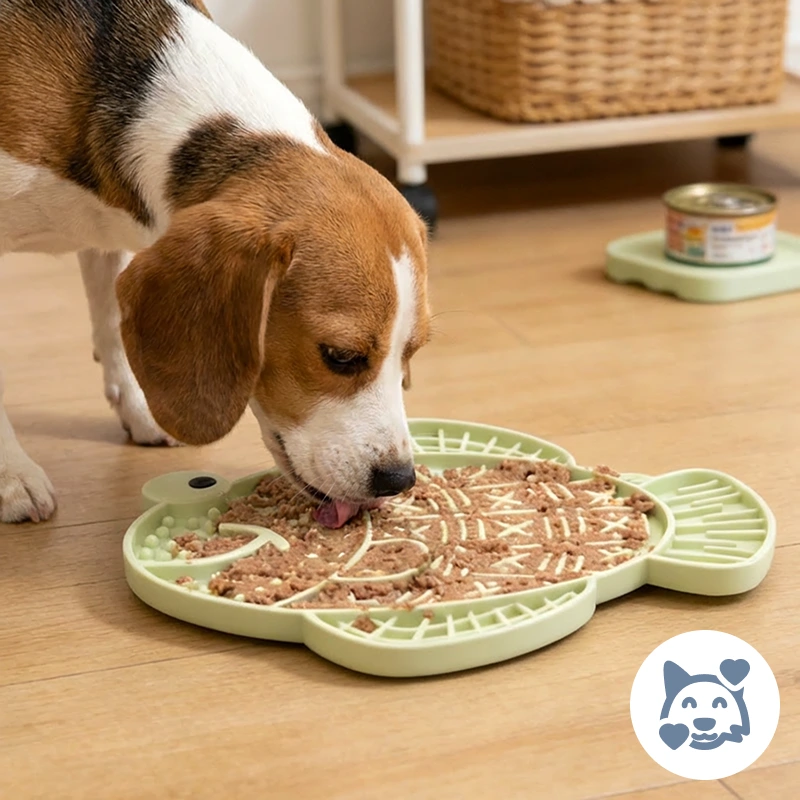 A mi cachorro le encantan las golosinas en su alfombrilla. No es desordenado.
