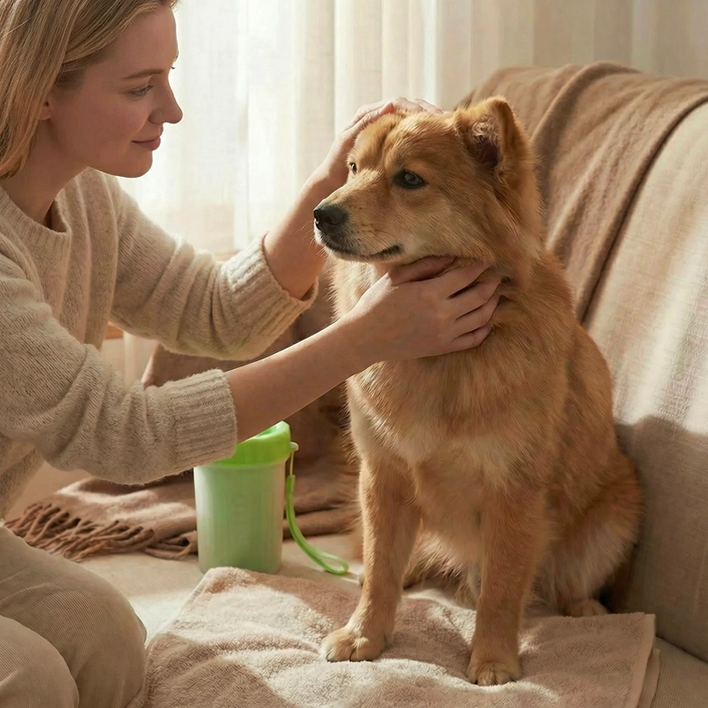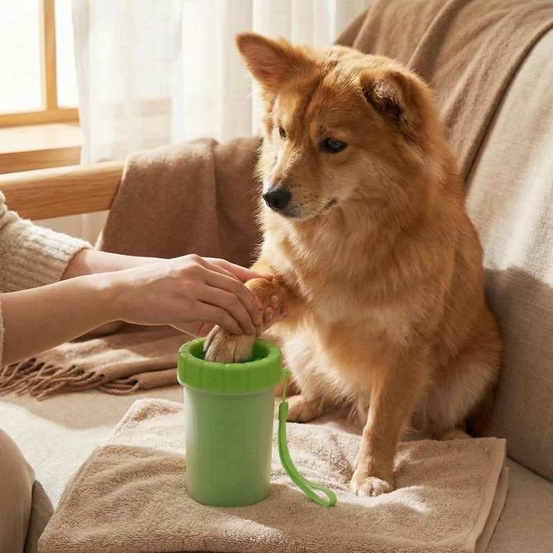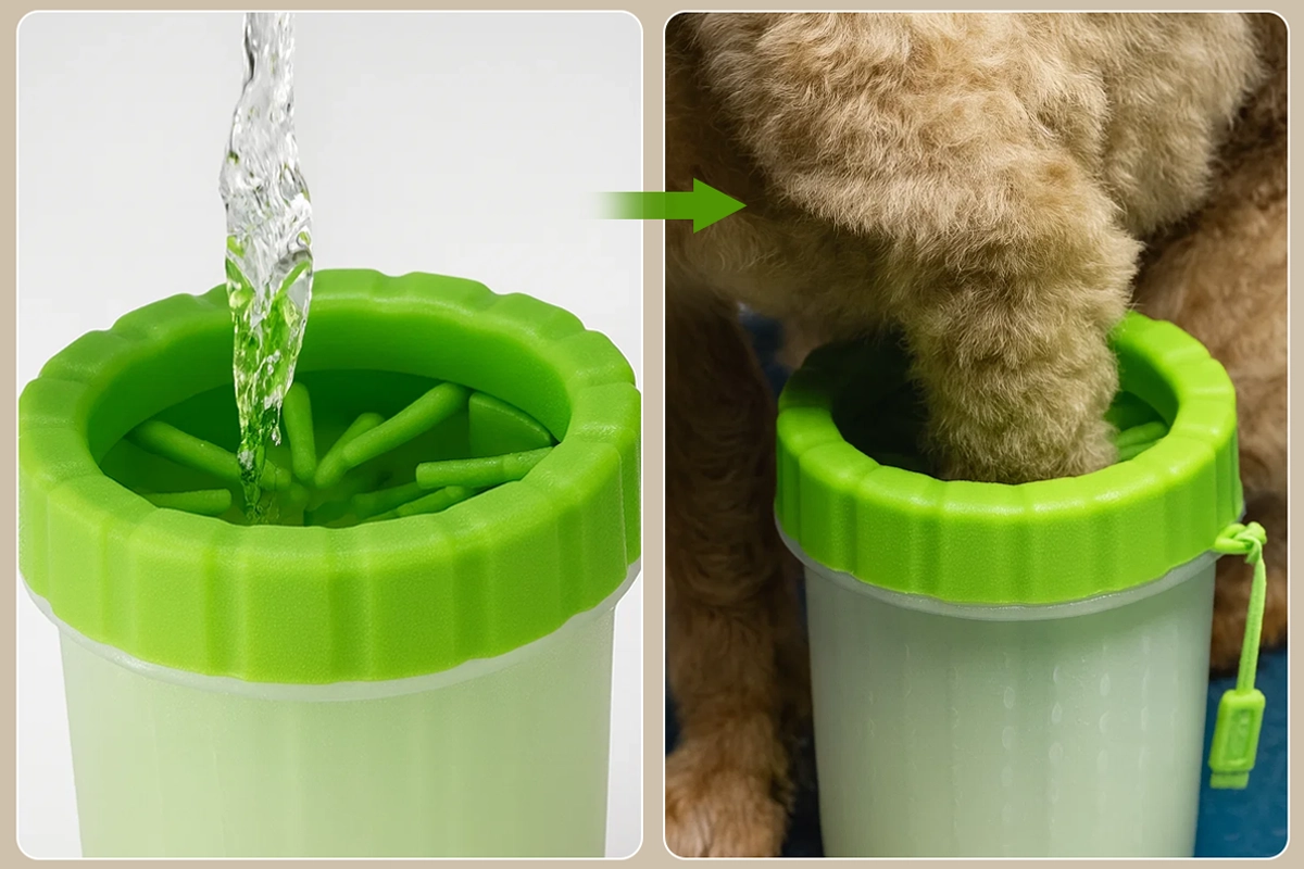 Este vaso para limpiar patas ha cambiado completamente mis paseos con Max. Las cerdas suaves son delicadas y todo el barro desaparece rapidísimo.