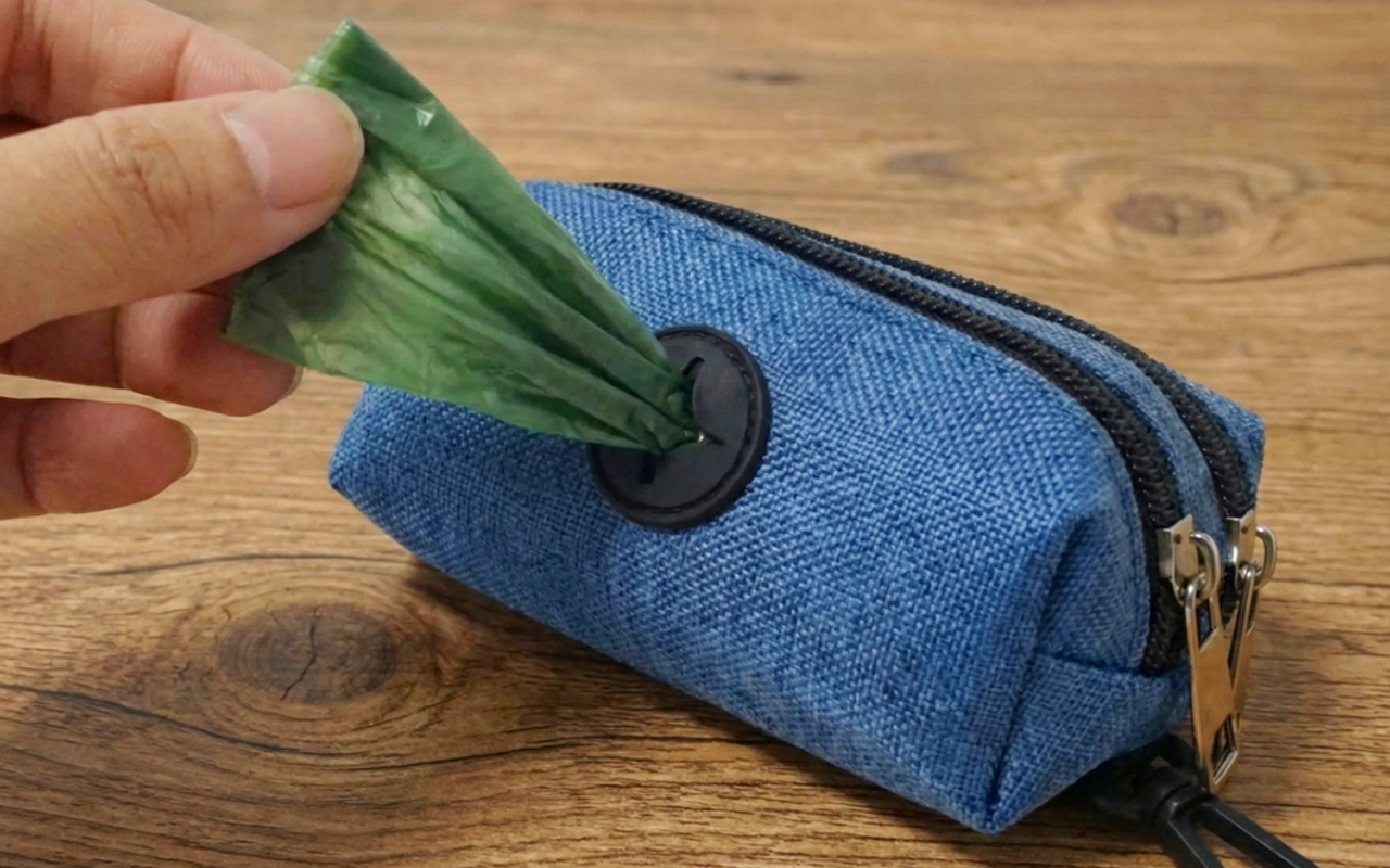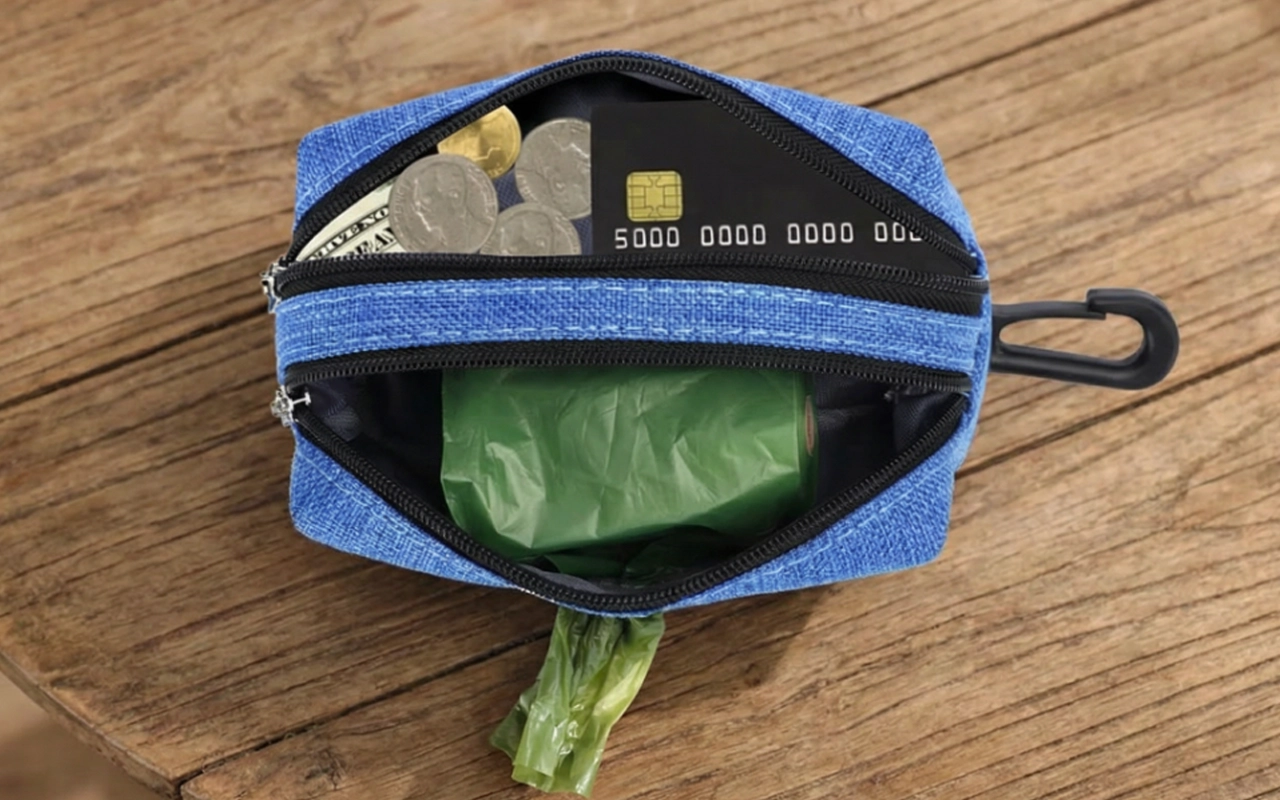Este dispensador contiene todo lo que necesito para los paseos. Caben mis llaves y premios, y las bolsas siempre se mantienen secas incluso cuando llueve. ¡Nunca he perdido nada!