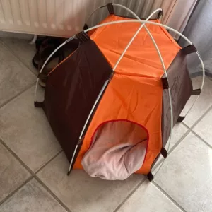 Mi perro usa esta tienda como una guarida, lo cual realmente disfruta. Le ofrece privacidad y seguridad. Es acogedora y cómoda para mi chico.