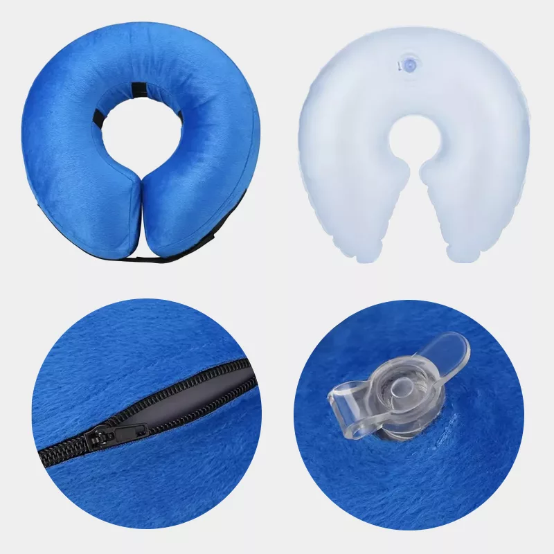 Nuestro cachorro durmió cómodamente con este cono inflable. Me gustó que no bloqueaba su visión y podía comer y beber normalmente.