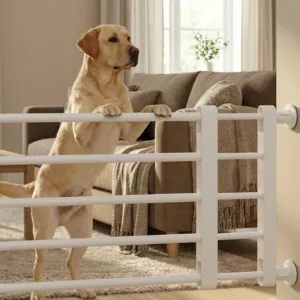 Moví esta barrera entre varias habitaciones, el diseño flexible ayuda mucho. Todo se siente bien ensamblado y mi perro respeta los nuevos límites.