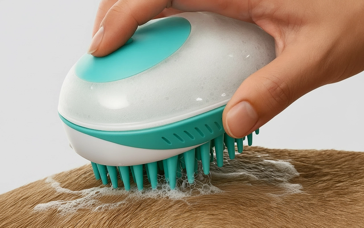 Cepillo de Baño de Silicona para Perros con Dispensador de Champú