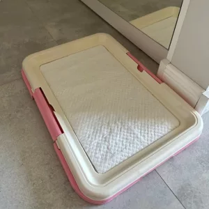 Este producto puede sostener fácilmente una almohadilla para orinar y evitará que tu cachorro destroce la almohadilla de papel. Lo mejor que he comprado para mi cachorro… ¡Muy recomendado!