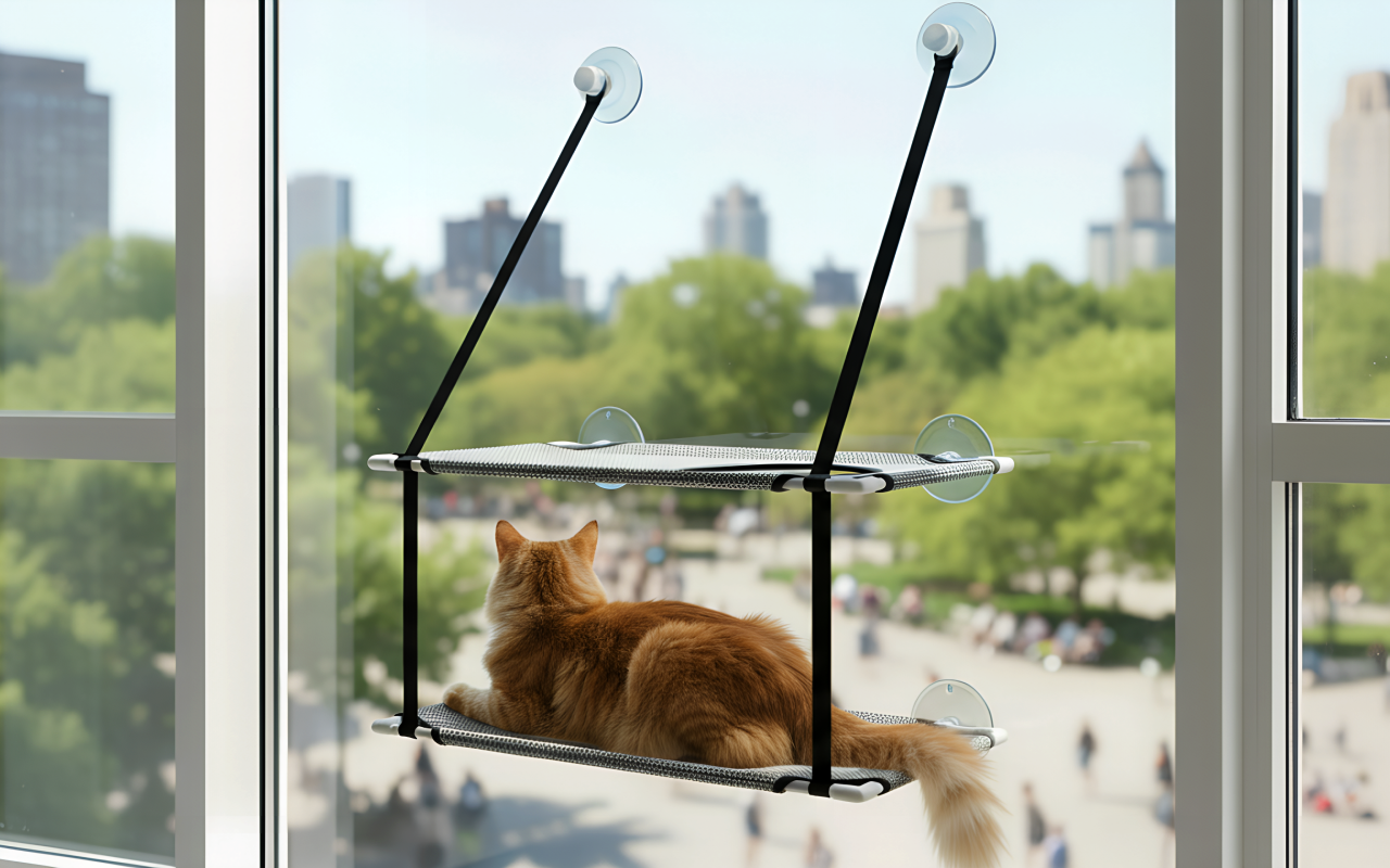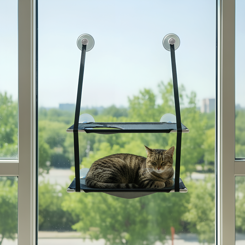 Soporta hasta 25 kg usando ventosas seguras y tela resistente. Incluso los gatos grandes o juguetones están bien apoyados sin preocupaciones.