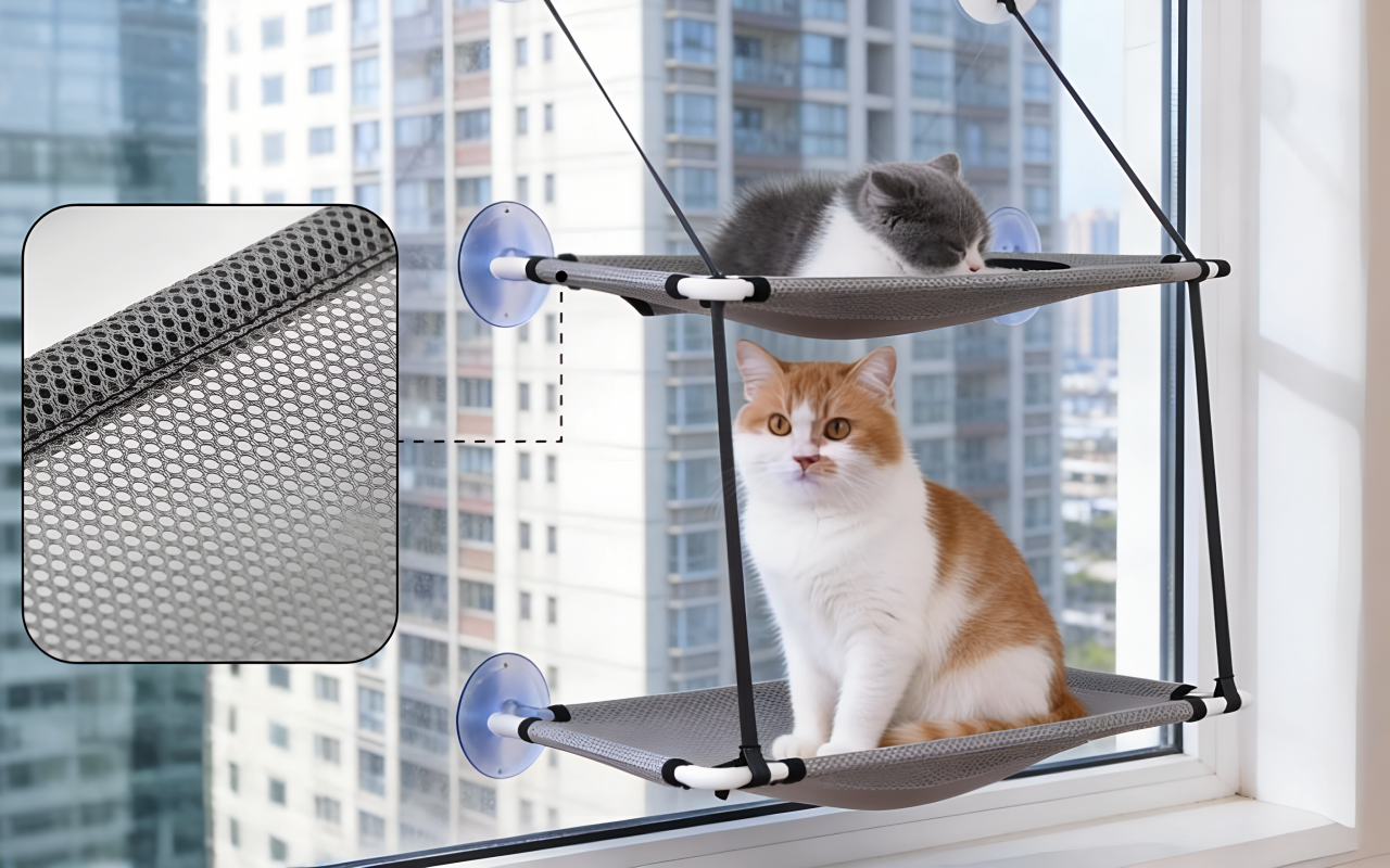 Hamaca de Gato de Doble Nivel para Ventana y Cama Colgante