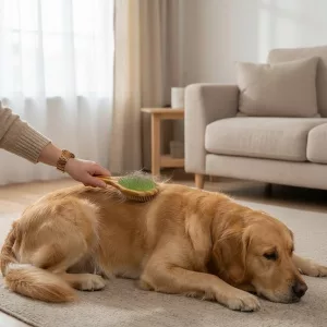 Este cepillo hace que el aseo diario sea muy fácil. Mi perro se sienta pacientemente e incluso mueve la cola mientras lo uso. El lado de las cerdas deja su pelaje super liso.