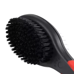 Por un lado, las cerdas densas eliminan eficientemente el pelo suelto y desenredan los nudos. El otro lado proporciona un cepillo de cerdas suaves, perfecto para terminar y alisar el pelaje.