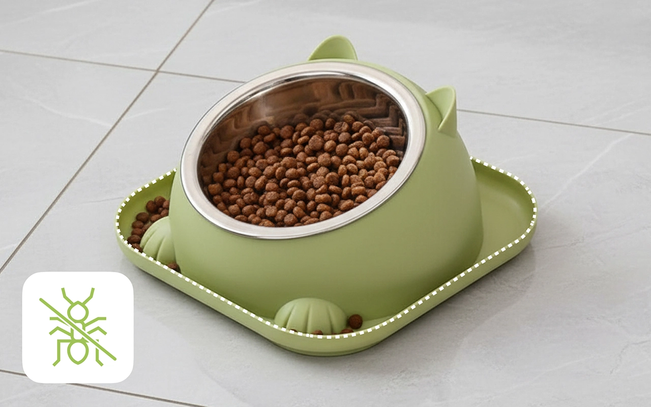 Cada comida se mantiene ordenada, haciendo la vida más fácil cada día. El diseño elevado ayuda a las mascotas a comer cómodamente sin dañar su cuello. Limpiar lleva segundos, así que tendrás más tiempo libre. La estructura inteligente a prueba de hormigas mantiene alejados a los visitantes no deseados.
