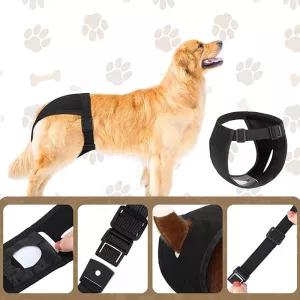Nuestro pañal viene con una hebilla de liberación rápida, lo que facilita ponerlo y quitarlo. Tu mascota no se estresará durante el cambio.