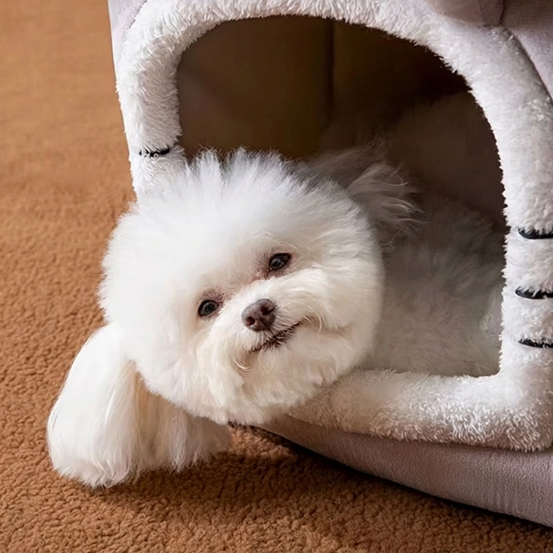 Nuestro perro eligió esta cama tipo tienda como su lugar principal para dormir. Es muy bonita y cabe justo debajo de mi escritorio. ¡Sigue esponjosa después del lavado!