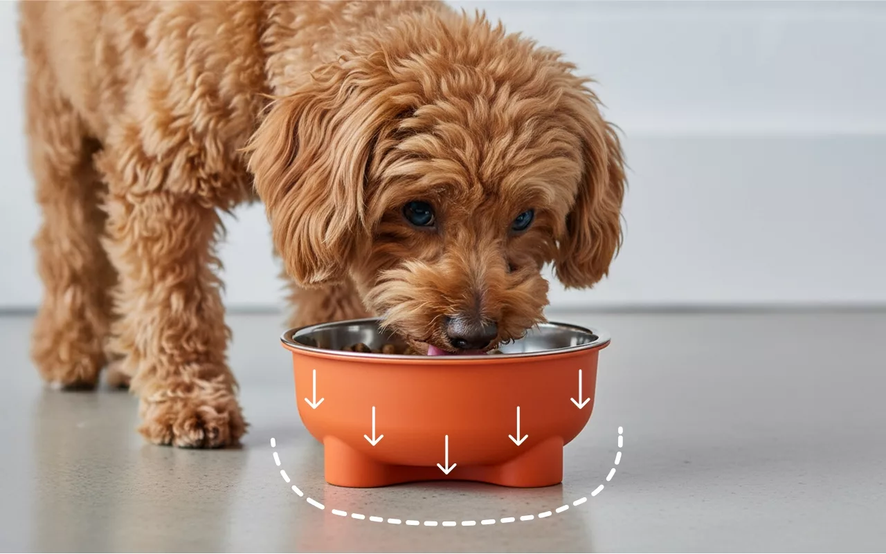 Sin derrames, incluso con mi beagle torpe. Los platos salen fácilmente para lavar, y él puede comer cómodo sin resbalarse por todos lados.