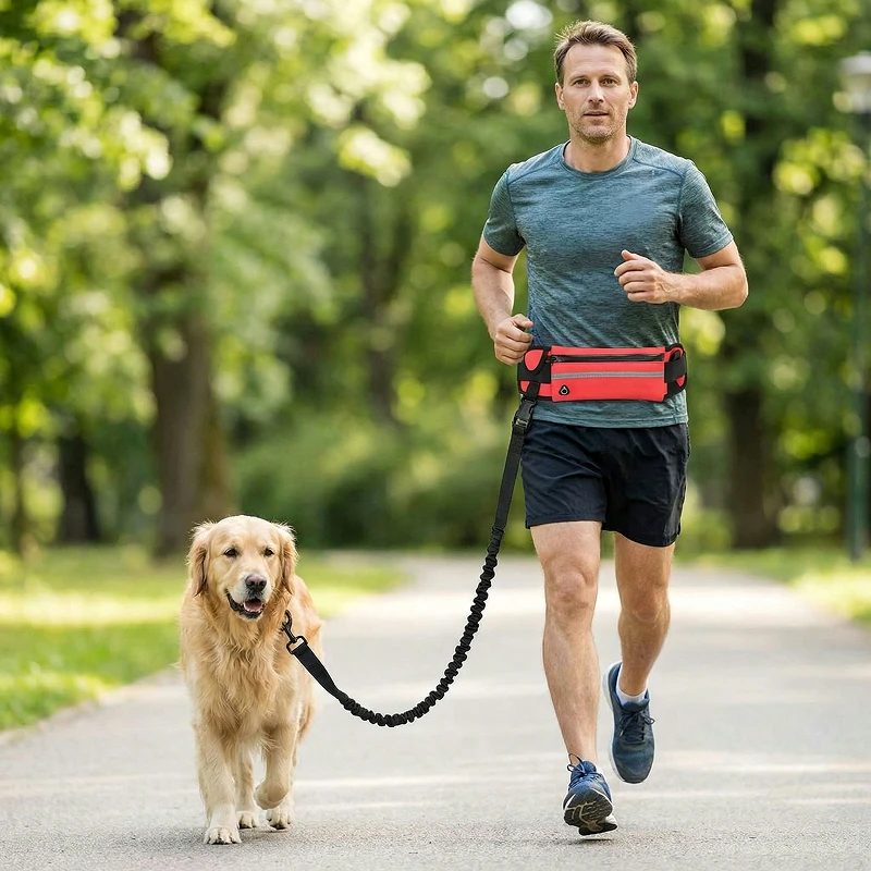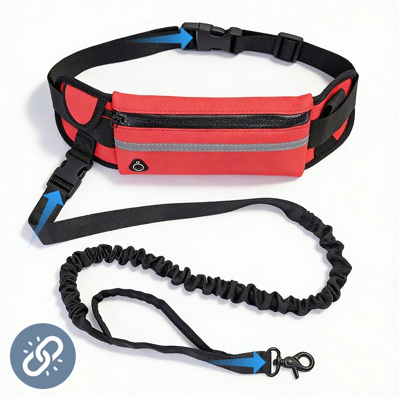 Disfruta de ejercicio o paseos sin molestias ni correas enredadas. El soporte de correa Primdog mantiene a tu mascota cerca permitiéndote moverte con naturalidad. Lleva tus esenciales de forma segura en la resistente bolsa de cintura durante las salidas.