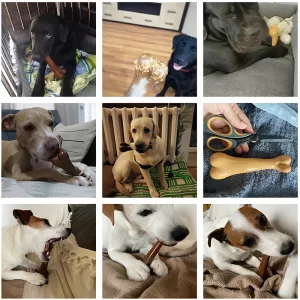 Compramos este palo para masticar para nuestro bóxer y está obsesionado. Corre con él y se mantiene ocupado durante horas, además sus dientes se ven más limpios.