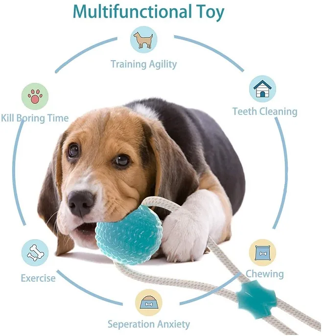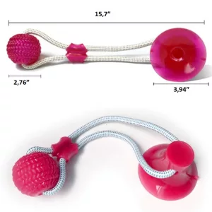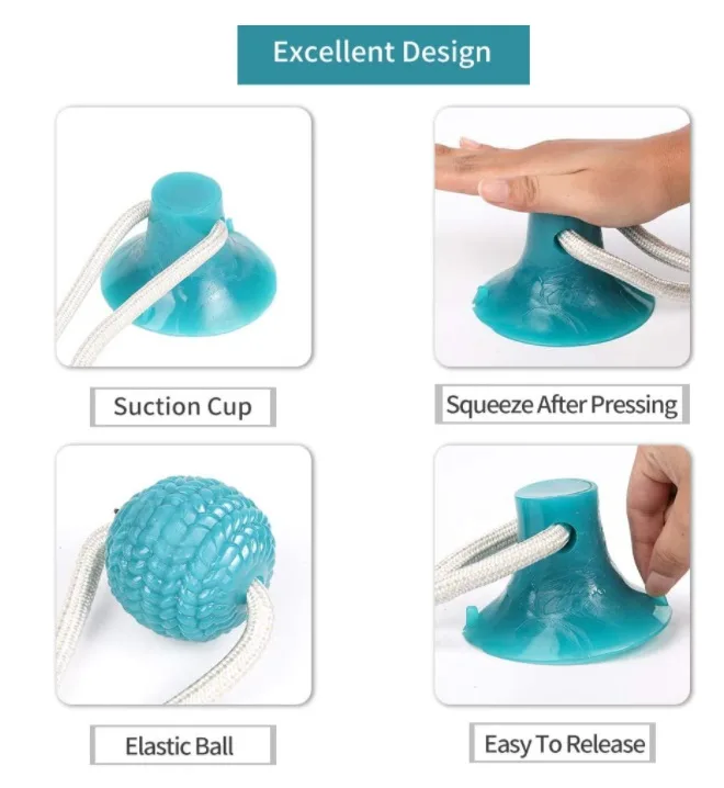 El concepto del juguete interactivo con ventosa para perros es simple: una ventosa fuerte ancla el juguete al suelo, pared o ventana y otras superficies lisas con fuerte succión. La cuerda adjunta y un juguete para morder desafía a tu perro a tirar, morder y jugar hasta que se canse con la pelota. El juguete está disponible en 3 colores brillantes: turquesa, rojo y azul. Con un aspecto tan llamativo, es atractivo para los perros y hace que no lo pierdan.