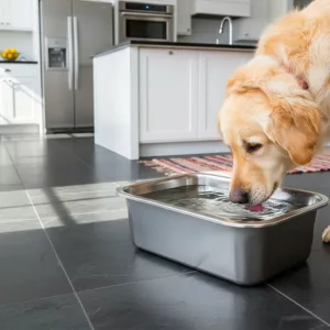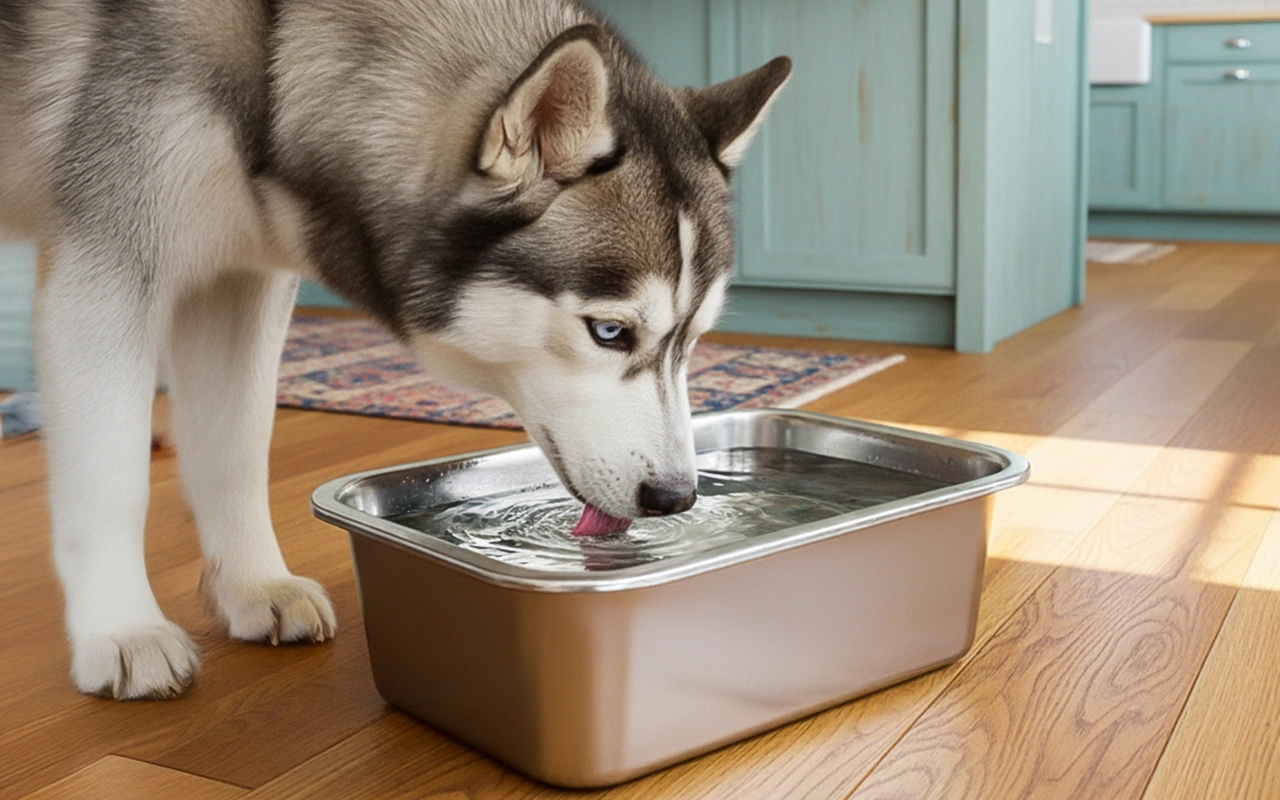 Las mascotas sedientas nunca se quedan sin agua limpia durante el día.