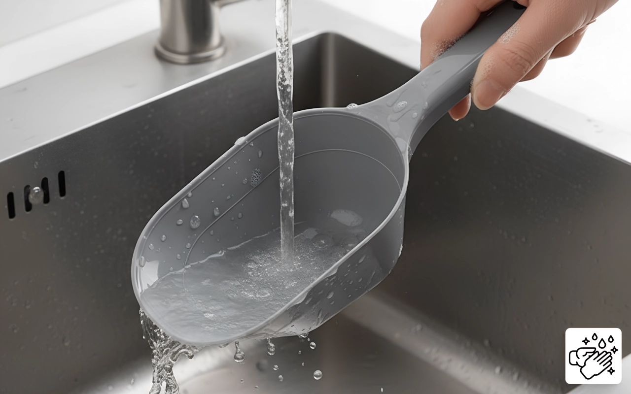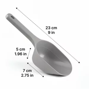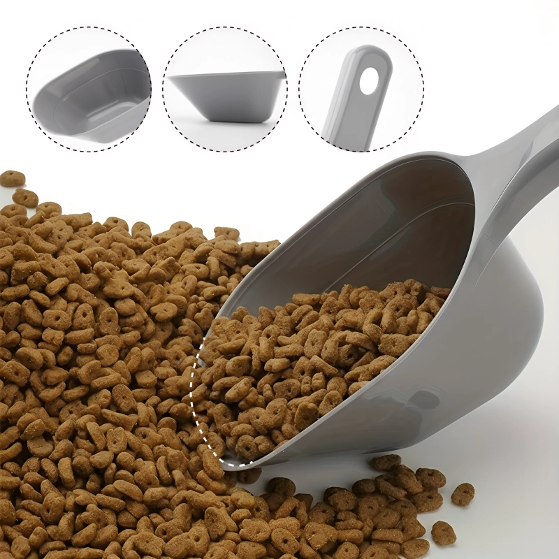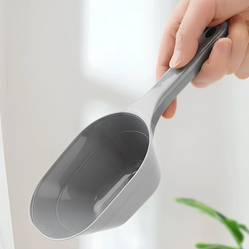 La uso todas las mañanas para nuestro husky y labrador. La cuchara profunda cabe mucha comida, además mis manos se mantienen limpias. Buen agarre, sin ensuciar.