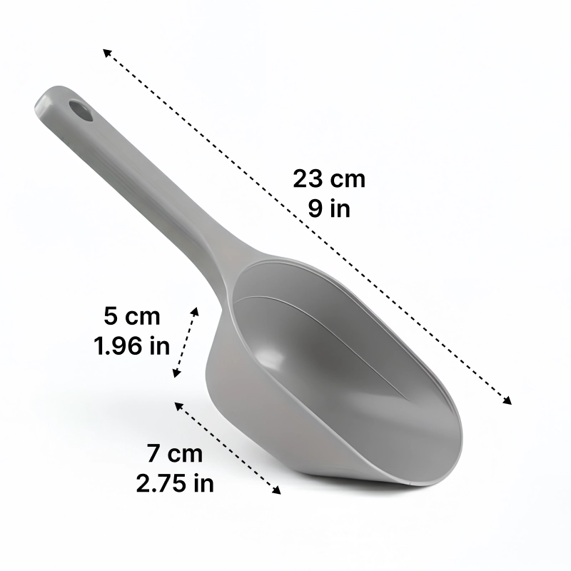 La cuchara grande Primdog le permite servir croquetas secas de forma rápida y ordenada. Su forma profunda contiene más, por lo que necesita menos viajes al recipiente de comida. Sus manos se mantienen limpias y alimentar toma solo segundos cada día.