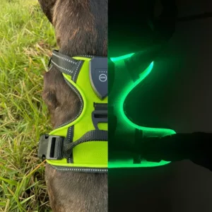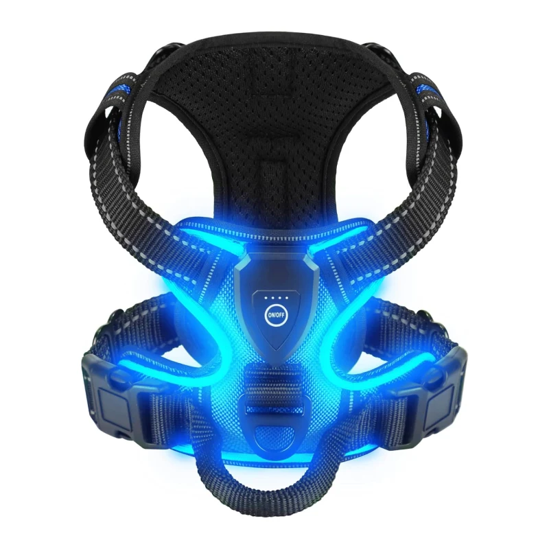 Nuestros paseos son mucho más fáciles desde usamos este arnés. Las luces a que los nos vean de inmediato y mi perro se mantiene fresco y cómodo.