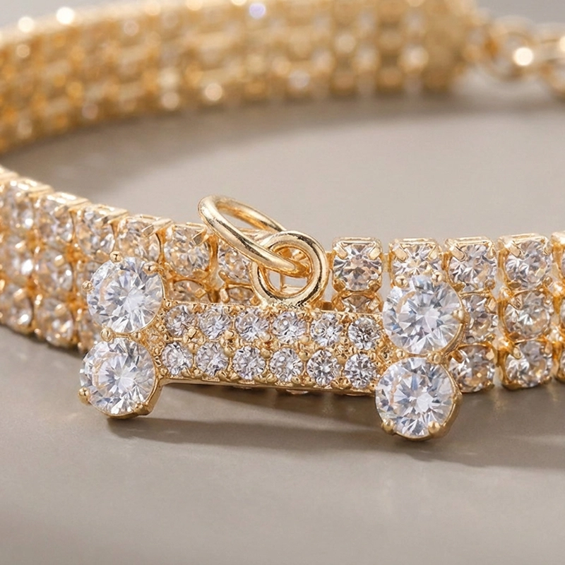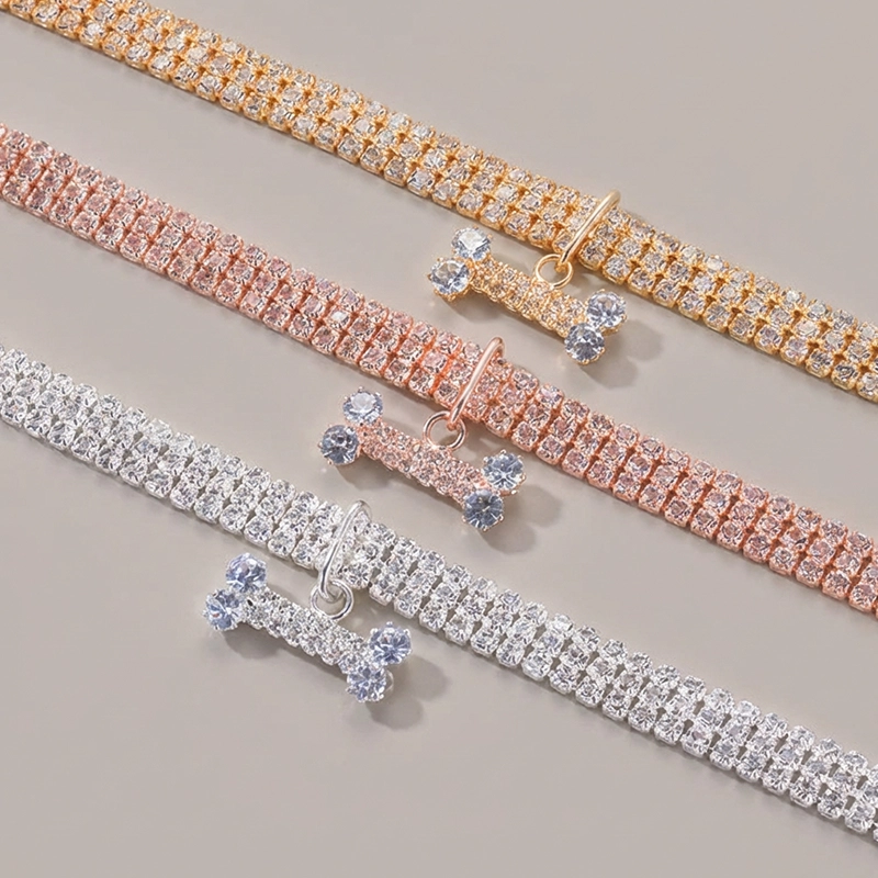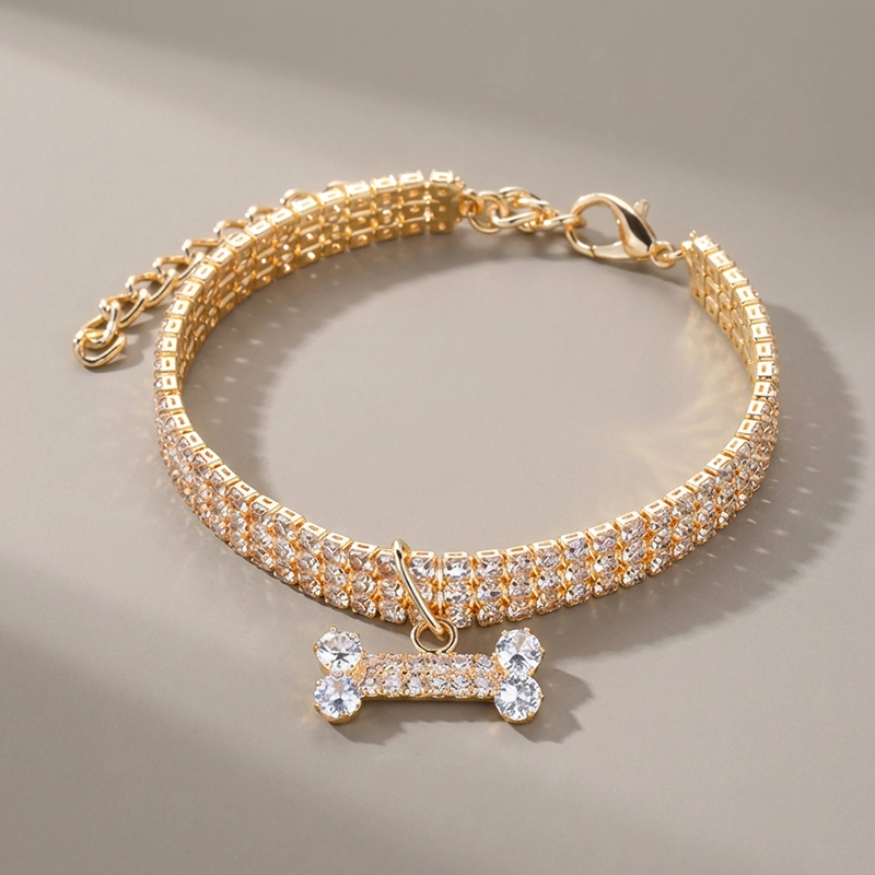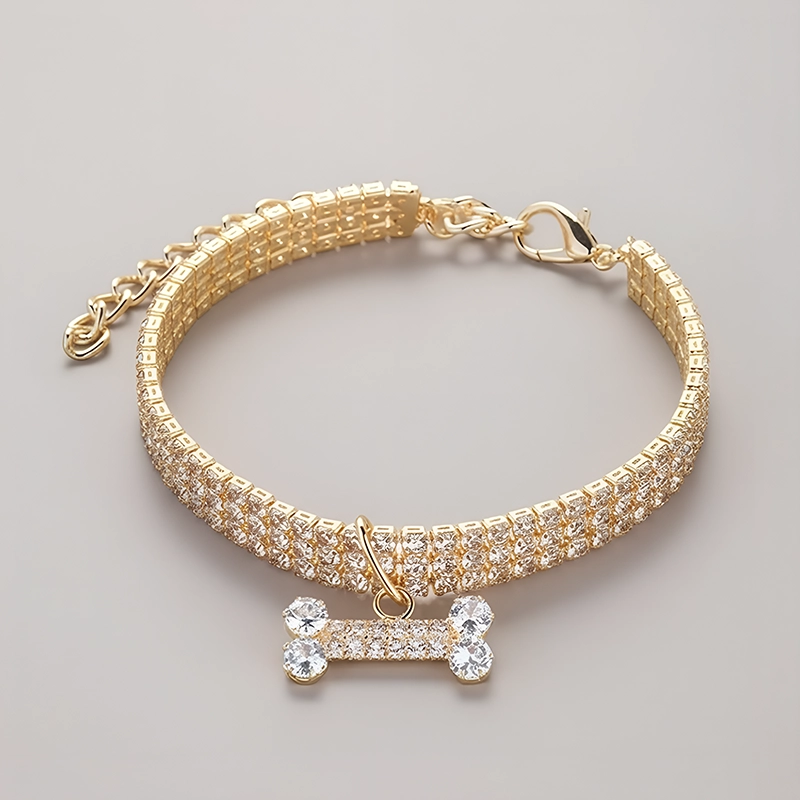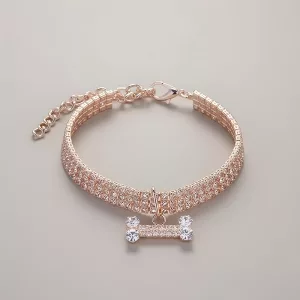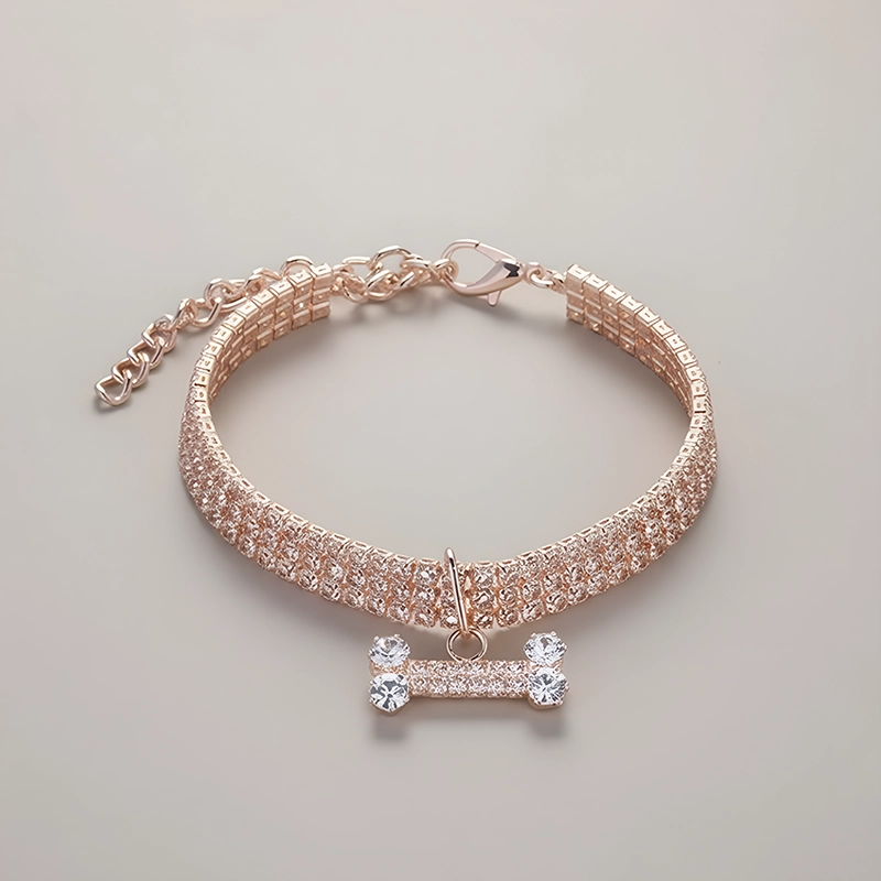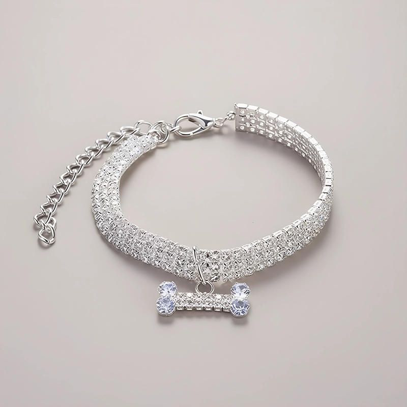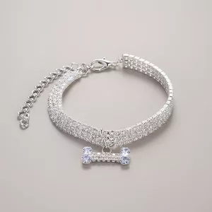 Hermoso collar para perro con diamantes de imitación y dije de hueso