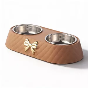 Hermoso Comedero Doble de Acero Inoxidable para Perros